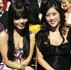 Vanessa Hudgens roza los hombros con la temporada seis ganador, Kristi Yamaguchi, en la temporada siete final de Dancing with the Stars.